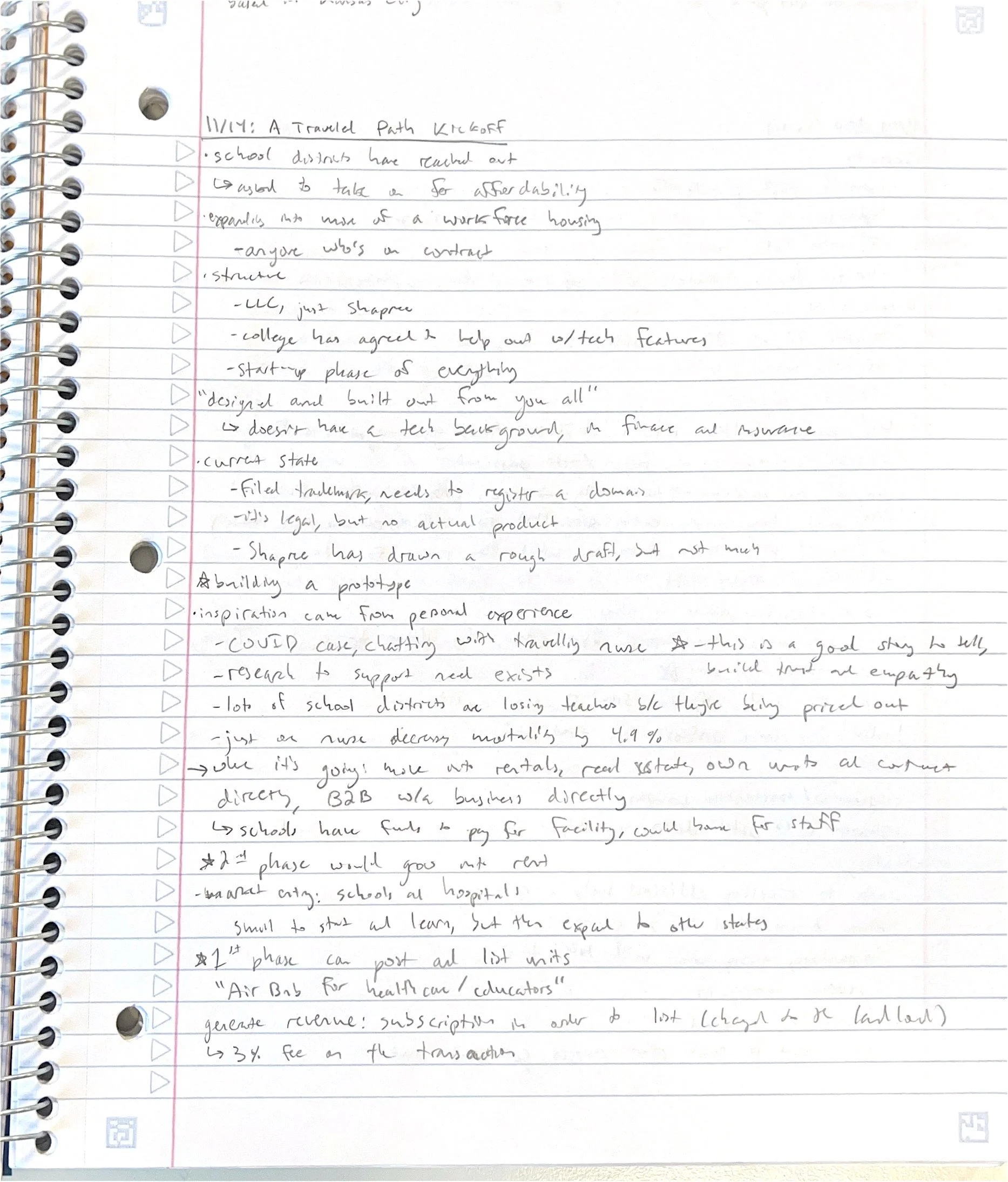 There are two main user groups for this platform that we focused on: traveling professionals and property owners. To support our secondary research, we conducted interviews with traveling nurses and educators, as well as property owners. Some key takeaways were: