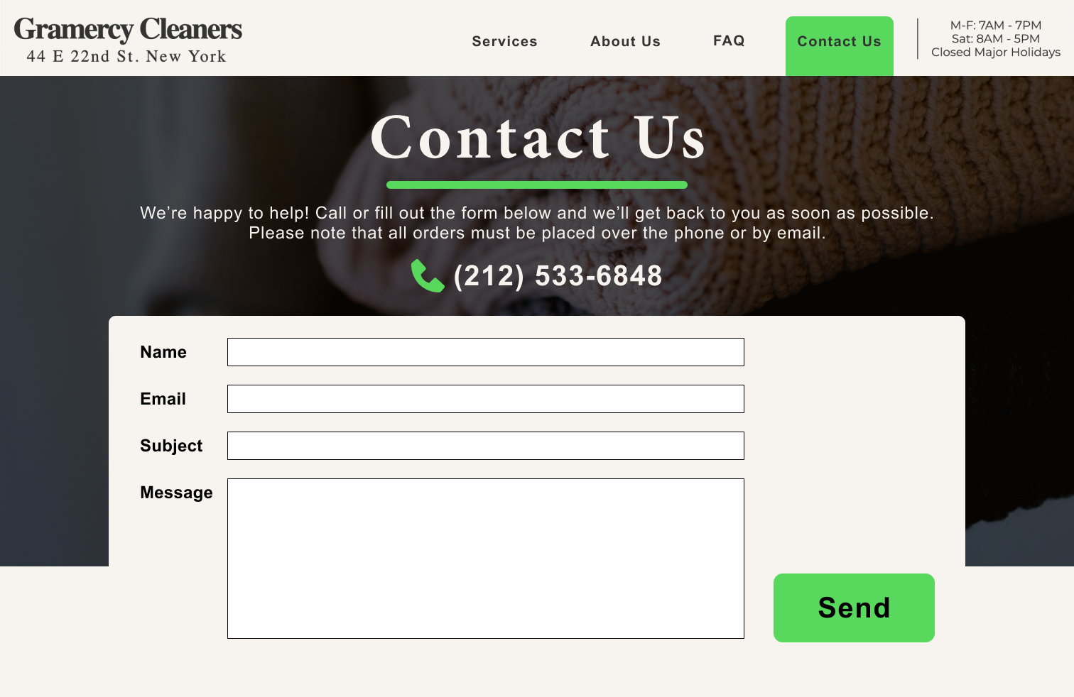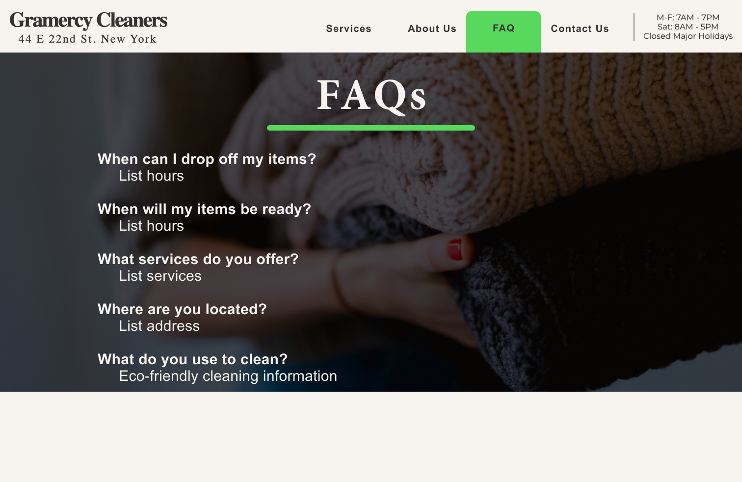 Gramercy Cleaners is a cleaning service that prides itself in delivering eco-friendly laundry and tailoring services. Gramercy Cleaners should have a website that reflects their values and high quality of service. While the current website is warm and welcoming, it is missing key information and is confusing to users. Through user testing, evaluation, and synthesis, we determined several recommendations to improve Gramercy Cleaners’ website.